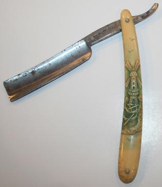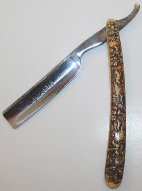 Stag hunting scene celluloid straight razor