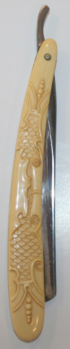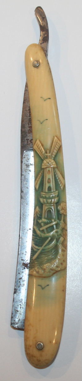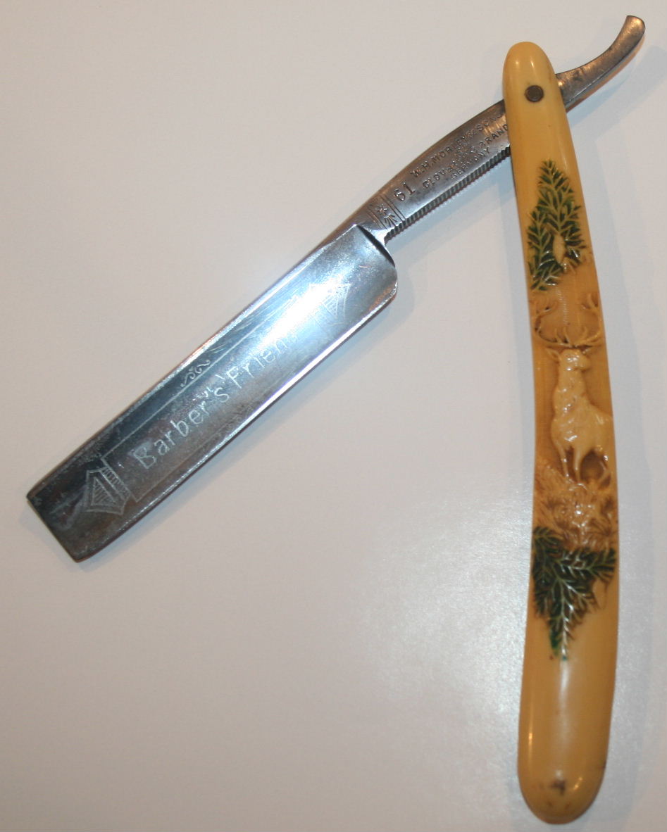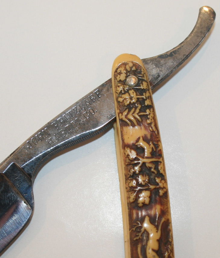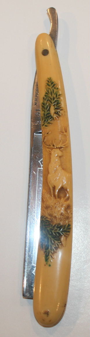 Stag hunting scene celluloid straight razor