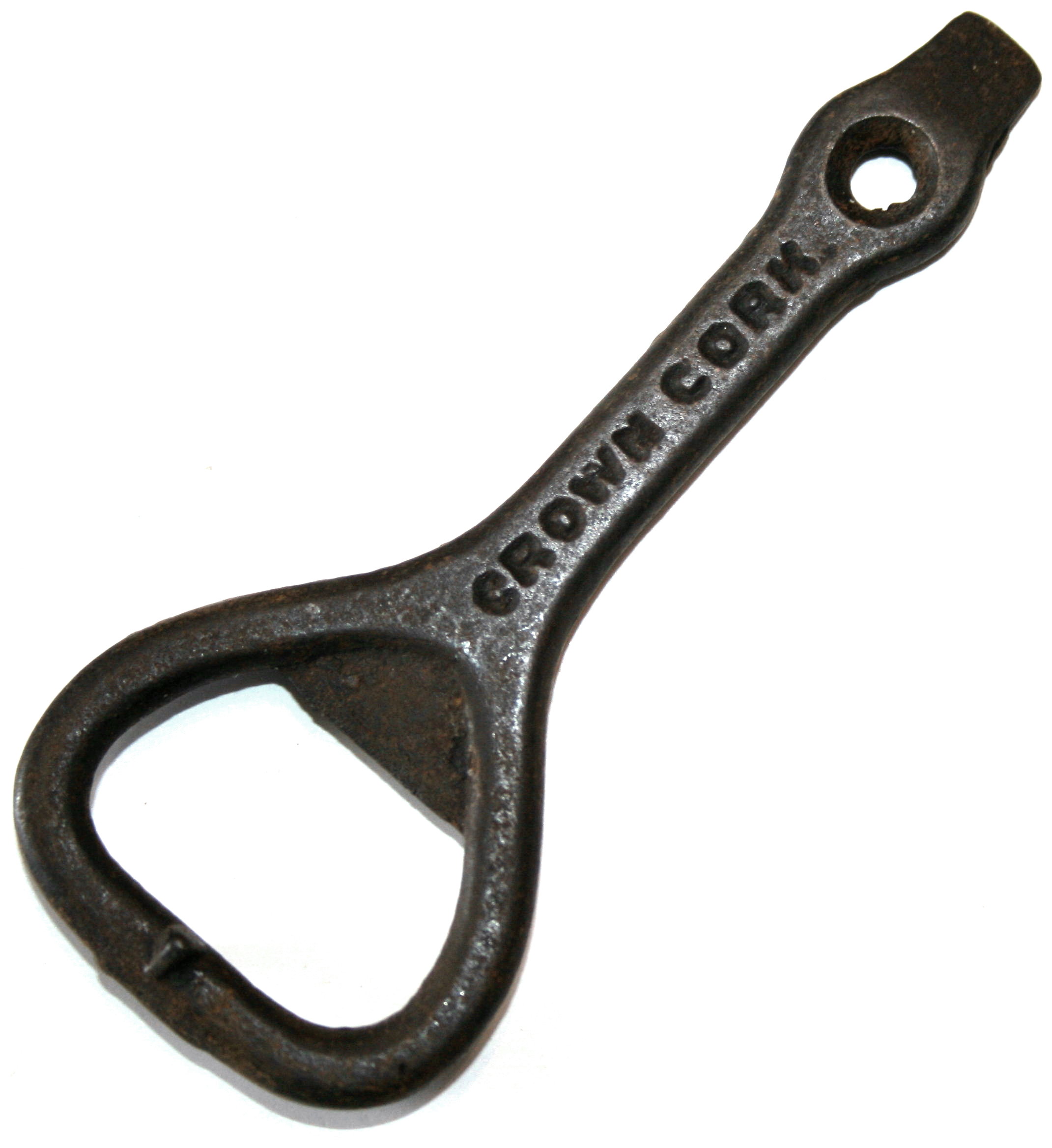 B1986 Crown Cork Opener Unusual simple cast iron Crown cork opener marked "CROWN CORK OPENER.