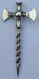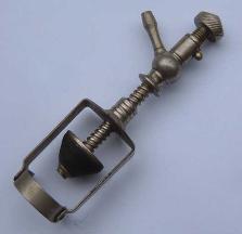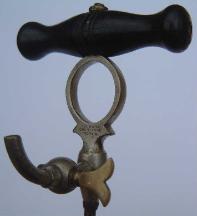 The top section of an interesting champagne tap. This is an 1877 English design & marked "Holborn Champagne Screw" The central ring allowing the middle finger to strengthen the grip on the handle.