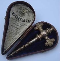 A fine example of a champagne tap in the original leather case & complete with the original instructions. This tap was manufactured by Maw & sons of London & boasts the Prince of Wales feathers as the tap handles.